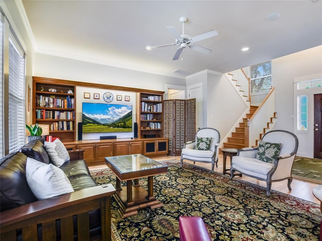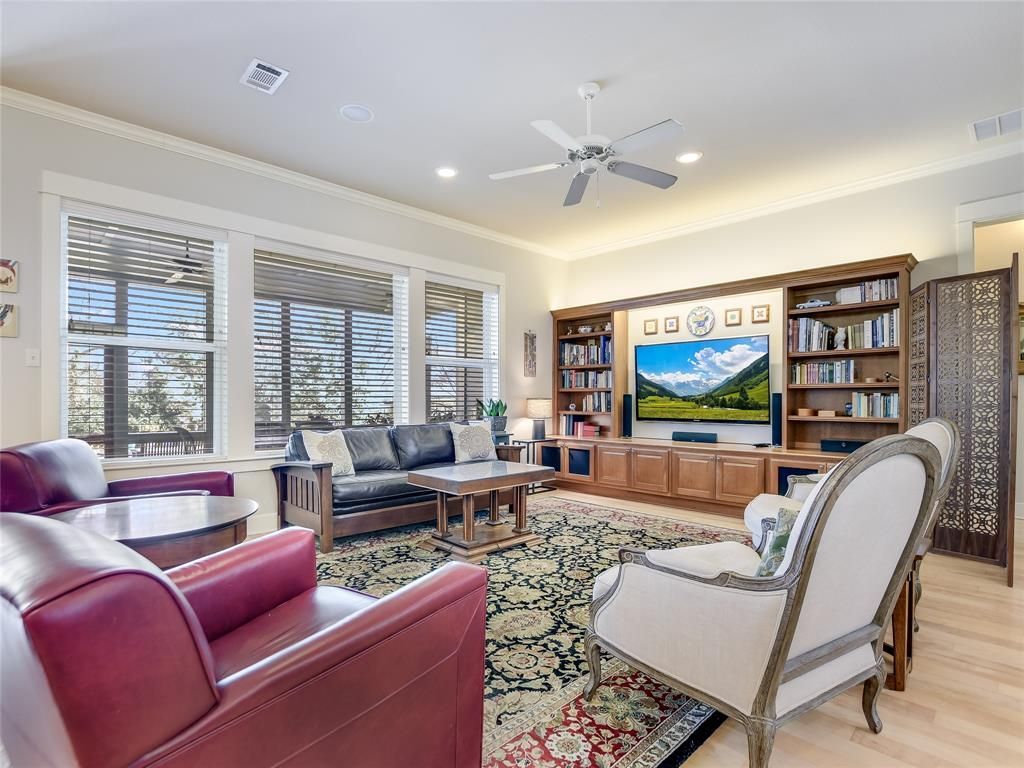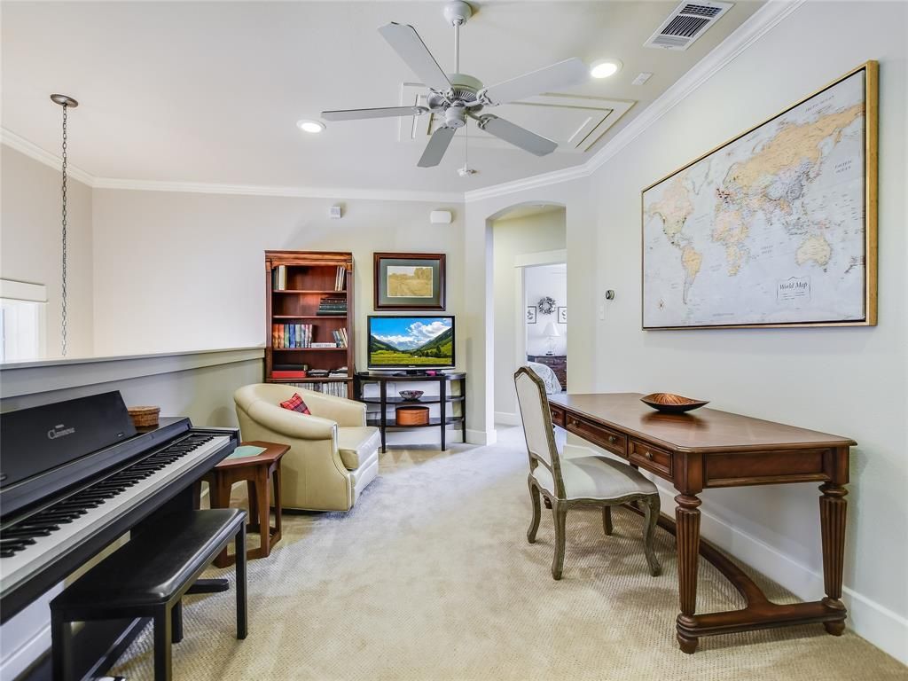 This home is warm and inviting with wood floors, high ceilings, lots of built-ins, and energy efficient appliances. The primary en suite bedroom plus a study/office are on the main floor. Upstairs has a second lofted living space and 3 generous bedrooms and a full bath.