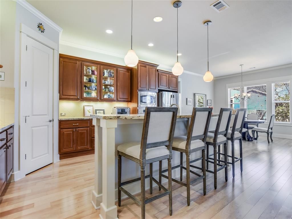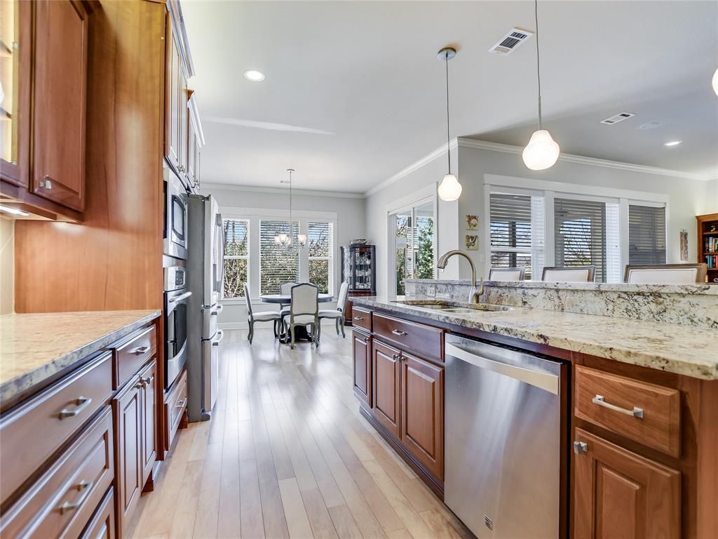 Absolutely fabulous screened-in porch overlooks the large, beautiful, private back yard. Custom cherry wood cabinets fill the gourmet kitchen which is fully open to the family room. A very generous utility room leads to the garage and back yard.
