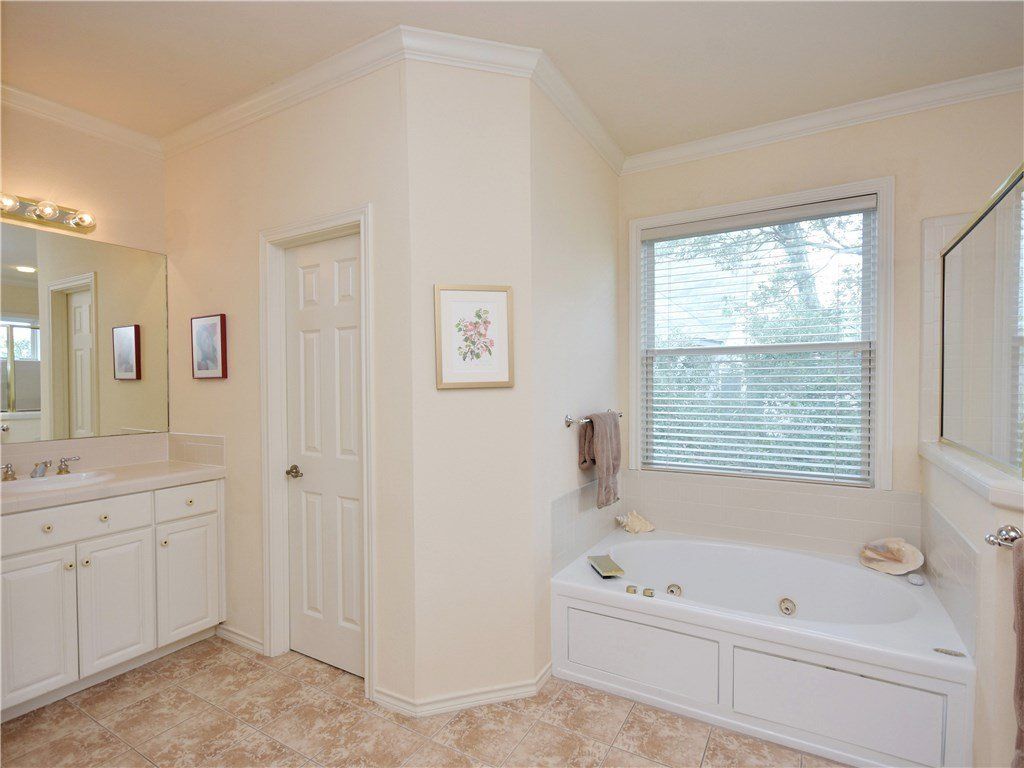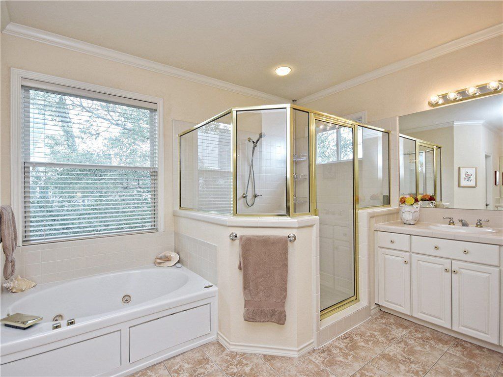 - master bath has his and hers vanities, jetted tub, and separate shower