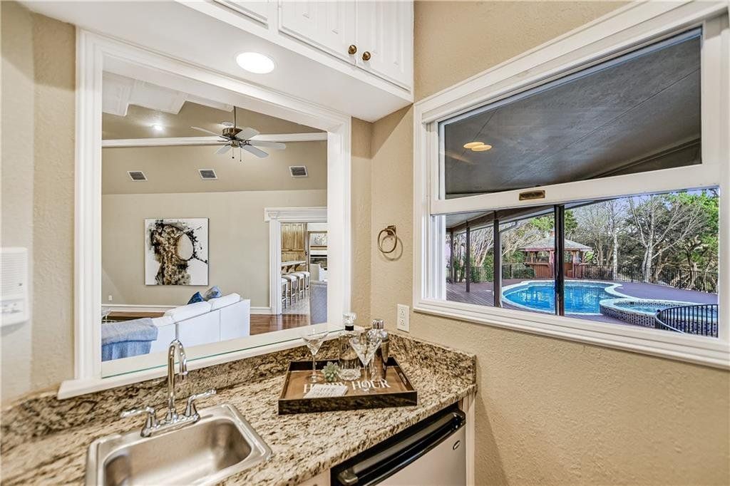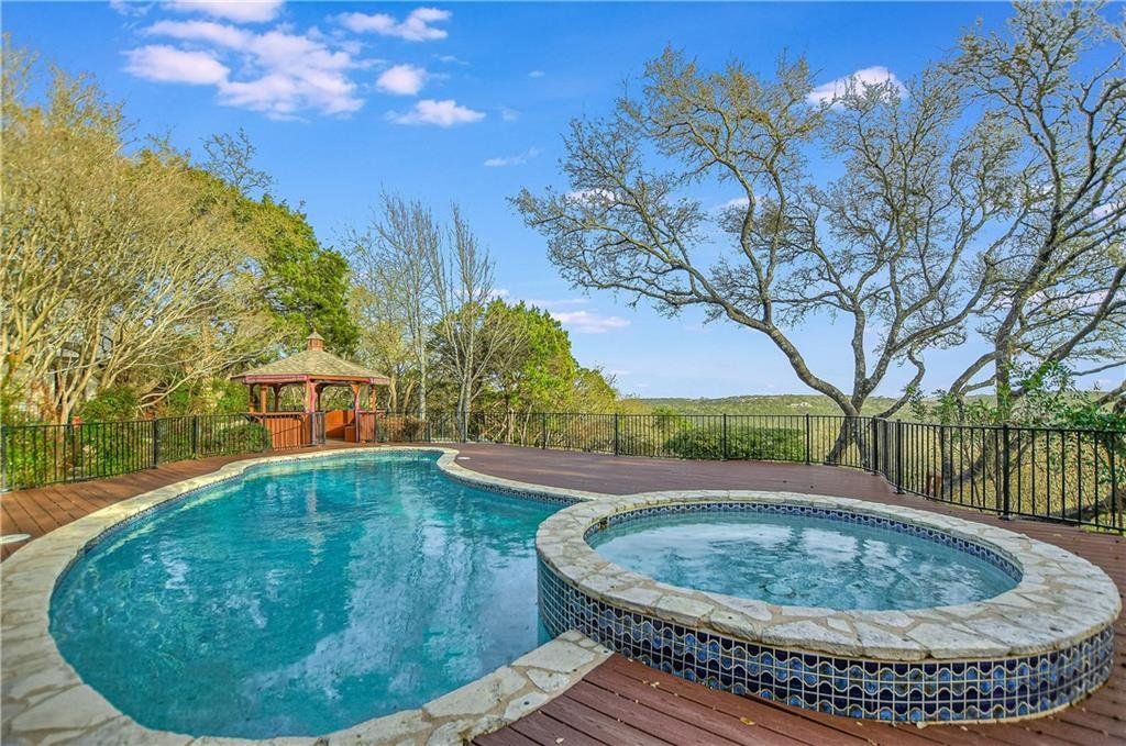 SOLD. WOW! Views of the canyon and miles beyond in this custom built, one-level estate-feeling home! This property was lovingly landscaped and is listed as a certified wildlife habitat. The back of the house has large windows overlooking the expansive covered porch, deck, swimming pool and sauna, pergola, outdoor cooking/fire pit patio and miles and miles of spectacular views! Solar panels on the back side of the roof make this property even more eco-friendly and capture the spirit that the owners created. The front yard is an environmental showcase with a Koi pond/waterfall and dozens of beautiful native plant and tree species! The attic is enormous if you want to add even more square footaqe! All of this is located a quick 12-minute drive to town, but with Hill Country Nirvana! Very special!!
